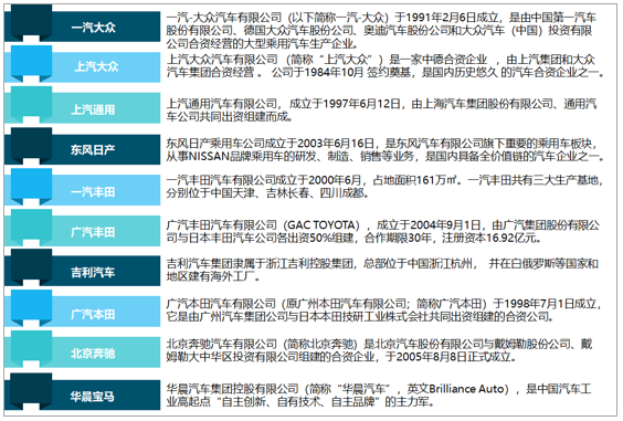 2020年1-10月中国轿车产量排名前十的企业简介