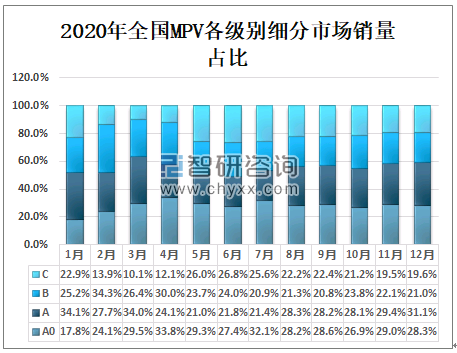 2020年全国MPV各级别细分市场销量占比
