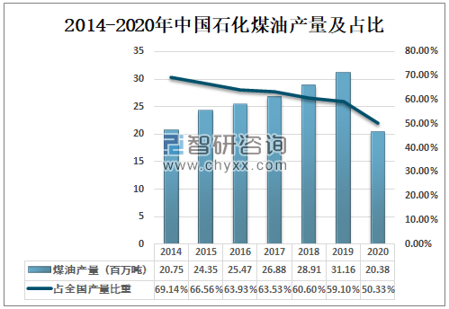 从生产格局来看,中国煤油生产主要以中石油、中石化两大集团为主,中国石化居国内煤油产量第一位;2019年中国石化煤油产量为31.16百万吨,占全国总产量的59.10%;2020年中国石化煤油产量为20.38百万吨,占全国总产量的50.33%。