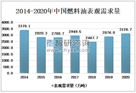 2014-2020年中国燃料油表观需求量