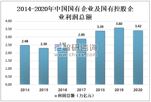 2020年中国国有企业及国有控股企业利润总额为3.42万亿元,较2019年的3.60万亿元同比下降4.83%。