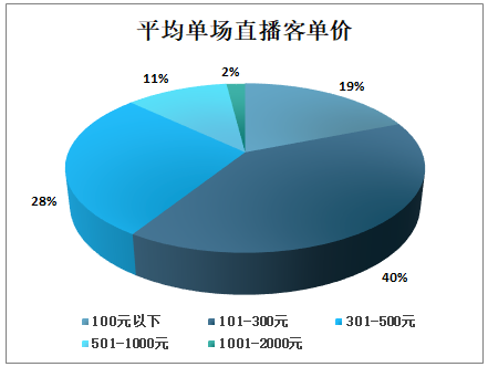 单场直播的客单价集中在500元内的企业占比87%,其中100元以下的占比19%,101-300元的占比40%,301-500元的占比28%;客单价集中在500元以上的企业占比13%。