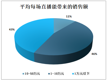 总体上看,直播带来的销售有限。单场直播中,近90%的企业销售额不超过10万,其中43%的企业不超过1万元,46%的企业销售额在1-10万元之间,仅11%的企业销售额在10-50万元之间。
