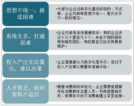 一方面是企业的主要负责人的认识和接受程度,决定了数字化转型的决心和力度;即便一把手有决心,执行层的认识不够,也会影响到转型效果。另一方面,转型过程中,难免会触及现有部门的利益而导致执行受阻,制约数字化全面推进。