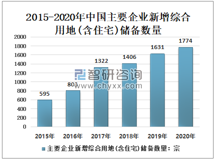 智研咨询发布的《2021-2027年中国综合用地行业市场研究分析及投资战略规划报告》显示:2015-2020年中国主要企业新增综合用地(含住宅)储备数量呈增长趋势,2020年中国主要企业新增综合用地(含住宅)储备数量1774宗,同比增长8.77%。