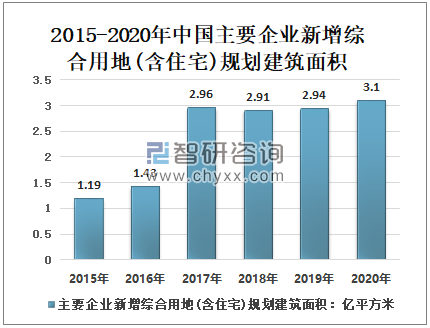2015-2020年中国主要企业新增综合用地(含住宅)占地面积