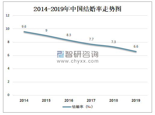 2014-2019年中国结婚率走势图