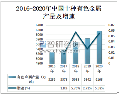 随着新冠肺炎疫情防控和复工复产工作的推进,我国十种有色金属产量平稳增长。2020年我国十种有色金属产量6168万吨,较上年同期增加326万吨,同比增长5.58%,增幅同比扩大2个百分点。