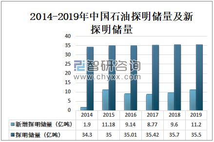 据自然资源部数据显示,2019年中国石油探明储量为35.5亿吨,同比下降0.6%;中国石油新探明储量为11.2亿吨,同比增长16.7%。
