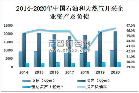 据国家统计局数据显示,2020年中国石油和天然气开采企业资产为21560.8亿元,同比下降0.6%;中国石油和天然气开采企业负债为10051.1亿元,同比增长1.1%;中国石油和天然气开采企业流动资产为1%;中国石油和天然气开采企业资产负债率为46.6%。