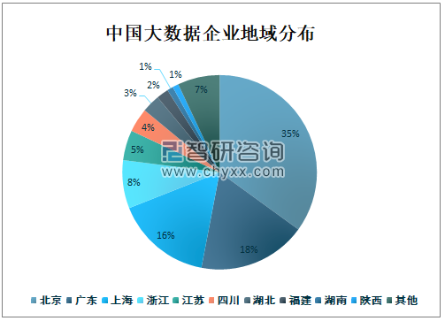 我国大数据企业主要分布在北京、广东、上海、浙江等经济发达省份,受政策环境,人才创新,资金资源等因素影响,其中北京大数据企业数量占全国大数据企业总数量的35%,占比最大;广东大数据企业数量占全国大数据企业总数量的18%;上海大数据企业数量占全国大数据企业总数量的16%;浙江大数据企业数量占全国大数据企业总数量的8%。
