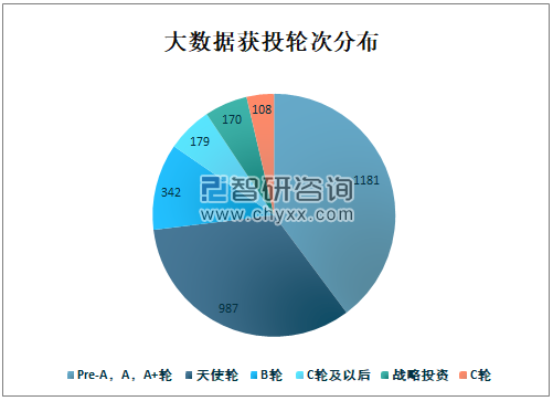 从融资轮次上看,大数据行业融资主要集中在早期项目,其中天使轮项目占33%,Pre-A、A、A+轮项目40%,合计占比73.07%。B轮占11.53%;C轮及以后占6.03%;战略投资占5.73%;C轮占3.64%。大部分企业仍处于早期投资占主导的阶段,这也可以佐证投资机构对大数据市场依然充满信心。随着行业知识、技术架构等方面日趋成熟,早期初创公司经受过市场的检验,贏得了投资人的信任,融资估值也日趋增高。