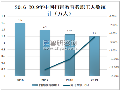 中国的扫盲工作虽然取得了很大的成绩,近年来中国扫除文盲人数逐年减少,2019年中国扫除文盲人数为16.1万人,较2018年减少了4.91万人,同比减少23.37%。