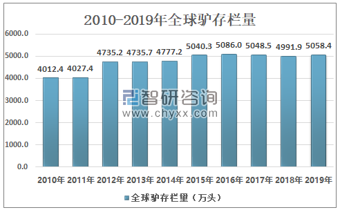 2010-2019年全球驴存栏量