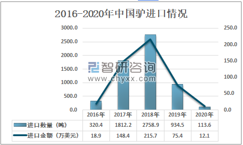 2016-2020年中国驴进口情况