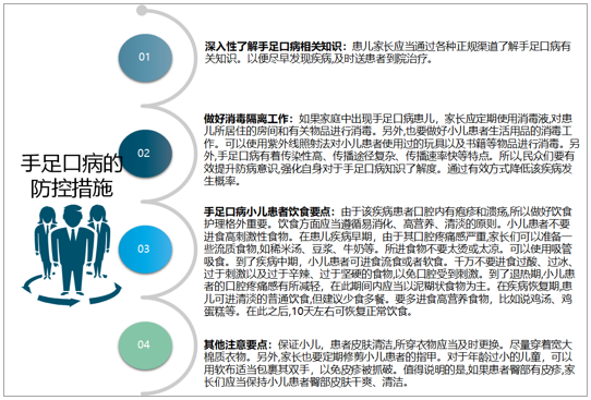 手足口病的防控措施主要有:深入性了解手足口病相关知识;做好消毒隔离工作;做好患者饮食护理等。