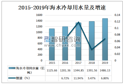 2015-2019年海水冷却用水量及增速