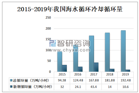 2015-2019年我国海水循环冷却循环量