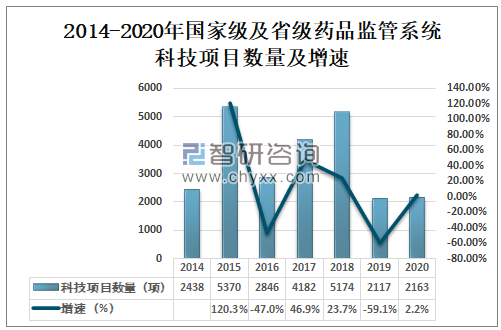 为进一步推动药品监管政策研究和科技创新,强化科研对监管工作的支撑引领作用。截至2020年底,我国国家级及省级药品监管系统科技项目总计2163项,较上年增加46项,同比增长2.2%;其中软课题261项。