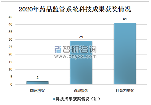 从获奖情况来看,2020年,我国药品监管系统科技成果获奖数量共计72项,国家级奖共2项,其中二等奖2项;省部级奖共29项,其中一等奖5项,二等奖16项,三等奖8项;社会力量奖41项。