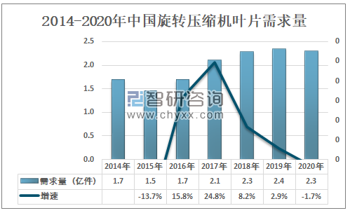 2014-2020年中国旋转压缩机叶片需求量