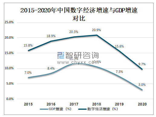 2015-2020年中国数字经济增速与GDP增速对比