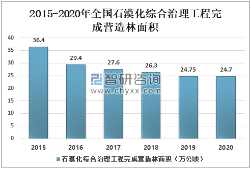 2015-2020年全国石漠化综合治理工程完成营造林面积