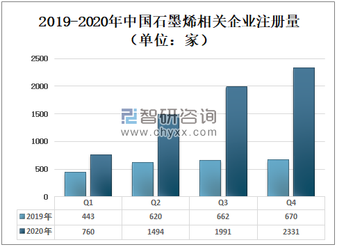 2019-2020年中国石墨烯相关企业注册量(单位:家)