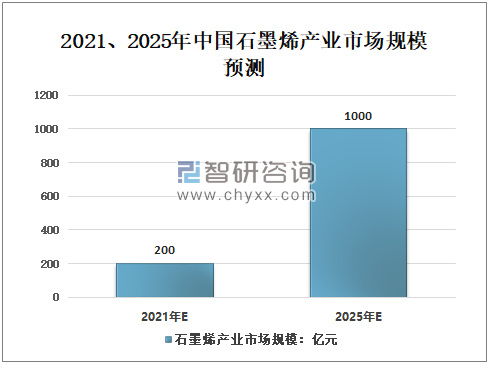 2021、2025年中国石墨烯产业市场规模预测