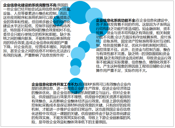 从目前的市场来看,绝大部分企业都已进行信息化建设,但部分企业仍然存在如下几个方面的问题。