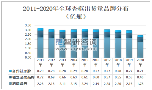 2011-2020年全球香槟出货量品牌分布(亿瓶)
