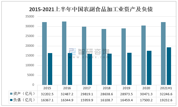 2015-2021上半年中国农副食品加工业资产及负债