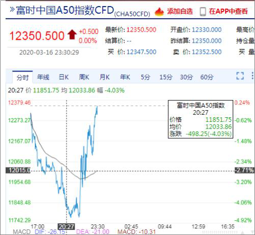 同时,富时中国A50指数从一度跌近5%,拉升至翻红。
