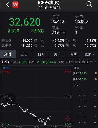 原油价格大幅跳水。布油盘中一度跌幅超10%,WTI原油跌破30美元/桶。