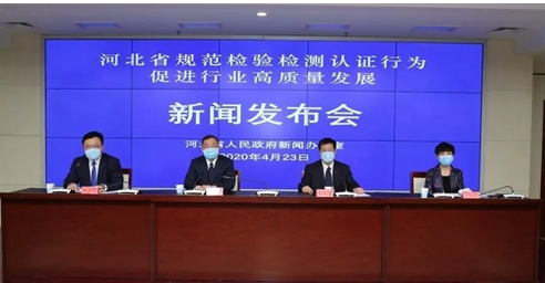 4月23日,河北省政府新闻办举办“河北省规范检验检测认证行为促进行业高质量发展”新闻发布会。省市场监管局二级巡视员、新闻发言人刘江潇作主发布。省局认可与检验检测监管处处长、二级巡视员李俊海,认证监管处二级调研员王淑珍回答了媒体们的提问。省委宣传部(省政府新闻办)新闻发布处处长、一级调研员田德锋主持了新闻发布会。