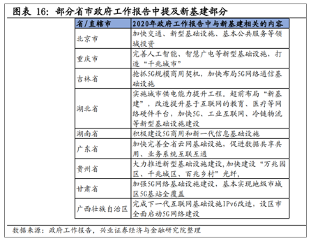 自2020年以来,已有25个省市的政府工作报告重点提及“新基建”,其中 8 个地区明确规划了2020年内计划新建5G基站的数量,合计超过30万个。