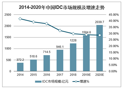2014-2020年中国IDC市场规模及增速走势