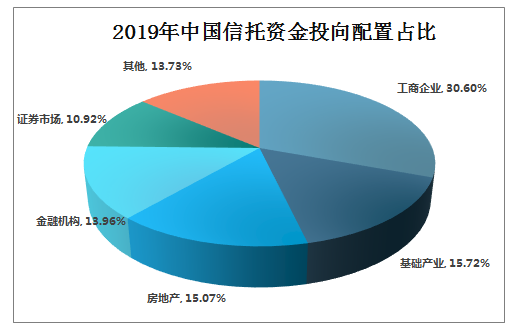 2019年中国信托资金投向配置占比