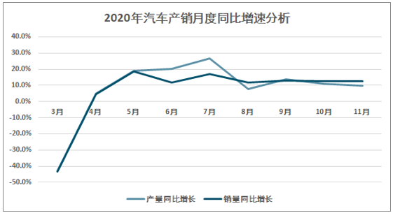 11月,我国汽车产销量分别达284.7万辆和277万辆,环比分别增长11.5%和7.6%,同比分别增长9.6%和12.6%。截至11月,我国汽车产销量已连续8个月呈现增长,其中销量增速已连续7个月保持在10%以上。