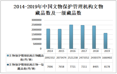 2014-2019年中国文物保护管理机构文物藏品数及一级藏品数
