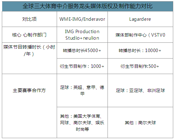 全球三大体育中介服务龙头媒体版权及制作能力对比