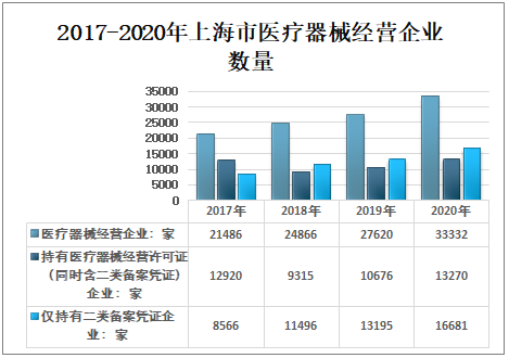 效用主要通过物理等方式获得,不是通过药理学、免疫学或者代谢的方式获得,或者虽然有这些方式参与但是只起辅助作用。目的是疾病的诊断、预防、监护、治疗或者缓解;损伤的诊断、监护、治疗、缓解或者功能补偿;生理结构或者生理过程的检验、替代、调节或者支持;生命的支持或者维持;妊娠控制;通过对来自人体的样本进行检查,为医疗或者诊断目的提供信息。2017-2020年上海市医疗器械生产企业数量呈增长趋势,2017年上海市医疗器械生产企业数量915家,至2020年上海市医疗器械生产企业数量963家,较2017年增加48家。2017-2020年上海市医疗器械生产企业数量