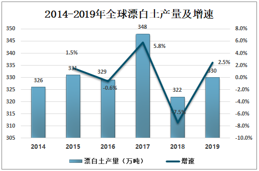 数据显示:漂白土是一种催化剂,据美国地质局数据显示,2019年全球漂白土产量为330万吨,同比增长2.5%。