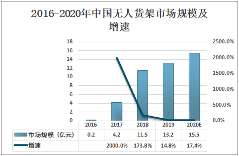 2020年的疫情影响下,促进了无接触消费。预计2020年中国无人货架市场规模为15.5亿元,同比增长17.4%。