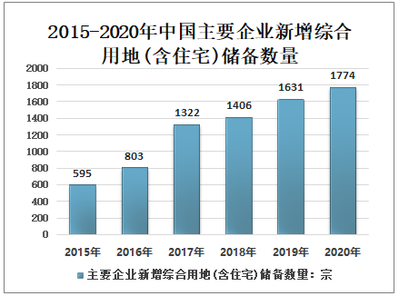 2015-2020年中国主要企业新增综合用地(含住宅)储备数量呈增长趋势,2020年中国主要企业新增综合用地(含住宅)储备数量1774宗,同比增长8.77%。