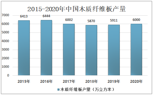 2015-2020年中国木质纤维板产量