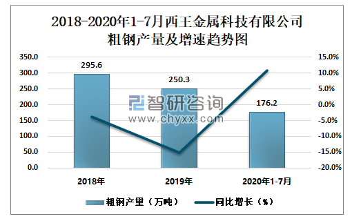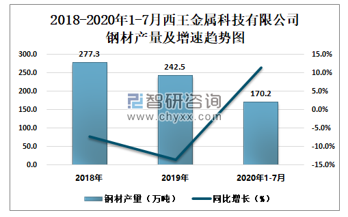 根据冶金工业信息中心数据显示:2020年1-7月西王金属科技有限公司钢材产量为170.2万吨,同比增长11.4%;粗钢产量为176.2万吨,同比增长10.7%;生铁产量为152.3万吨,同比增长6.8%。
