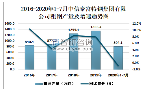 根据冶金工业信息中心数据显示:2020年1-7月中信泰富特钢集团有限公司钢材产量为699.1万吨,同比增长1.4%;粗钢产量为804.1万吨,同比下降0.8%;生铁产量为665.3万吨,同比下降4.4%。