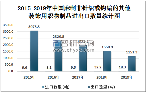 根据中国海关数据显示:2019年1-12月中国麻制非针织或钩编的其他装饰用织物制品进口数量为18.3吨,进口金额为136.9万美元;2019年1-12月中国麻制非针织或钩编的其他装饰用织物制品出口数量为1151.3吨,出口金额为1978.8万美元。