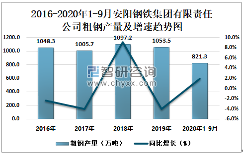 根据冶金工业信息中心数据显示:2020年1-9月安阳钢铁集团有限责任公司钢材产量为837.1万吨,同比增长1.9%;粗钢产量为821.3万吨,同比增长1.9%;生铁产量为785.9万吨,同比增长5.4%。